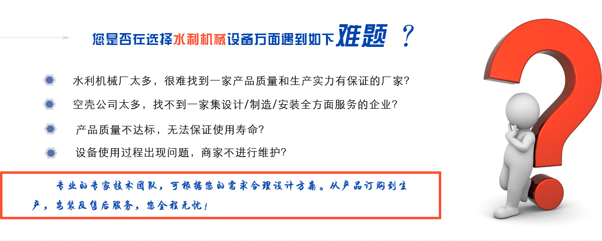 寧晉縣禹碩水利機械有限公司     寧晉縣禹碩水利機械有限公司是一家綜合生產型企業,專業從事液壓式啟閉機,固定卷揚式啟閉機,雙點吊卷揚式啟閉機,鑄鐵閘門及環(huán)保設備的專業制造,生產和安裝。具有完善的現代化管理模式,合理的產品結構,可靠的性能,確保為客戶提供優(yōu)質的產品和周到的售后服務。這是一個整合銷售,制造和安裝的監(jiān)管模型。水利工程機械生產綜合企業。我們公司已獲得國家頒布的液壓機械產品使用許可證。我們公司生產的產品廣泛用于河道,養殖,排灌,水電站,污水處理等水利工程。     我們的主導產品有:     1.螺桿式啟閉機3T-100T。全封閉式、手推帶鎖式0.3T-30T。螺桿側擺式0.5T-2T。螺絲手和電動手型3T-100T(單雙吊型)。     2.鑄鐵閘板,高壓鑄鐵閘板,雙面止水閘板,平面滑動鋼閘板,平面固定輪鋼閘板,銅鑲嵌鑄鐵方形閘板,圓形閘板,可調堰閘板,鑄鐵翻板閘板(防潮閘門),FRP閘板閘門,不銹鋼閘板閘門,機械閘板一體閘門,徑向閘門,停機閘,不銹鋼閘門等。     3.QPQ,QPK,QPG,QPT和QHQ型卷揚式啟閉機(單、雙點吊式)。     4.HGS旋轉式屏幕清潔劑,FHG反向式屏幕清潔劑,XGS旋轉式屏幕清潔劑,GLS高鏈式屏幕清潔劑,YZL螺旋壓力機,pls平面式屏幕等。     5.橡膠止水片651、652、653的水腫脹和其他橡膠止水片。止水橡膠包括P60,P50,P45,P35以及各種內外角,平板,橋架等。也可以根據用戶要求進行加工和定制。     我們公司的宗旨是:     “以質量求生存,以信譽求發(fā)展,以服務求效益”。今天的質量是明天的市場,企業的信譽是無形的市場,顧客的滿意是永恒的市場。以人為本創(chuàng)造產品,以誠信創(chuàng)造輝煌;質量保證,信譽至上”。……